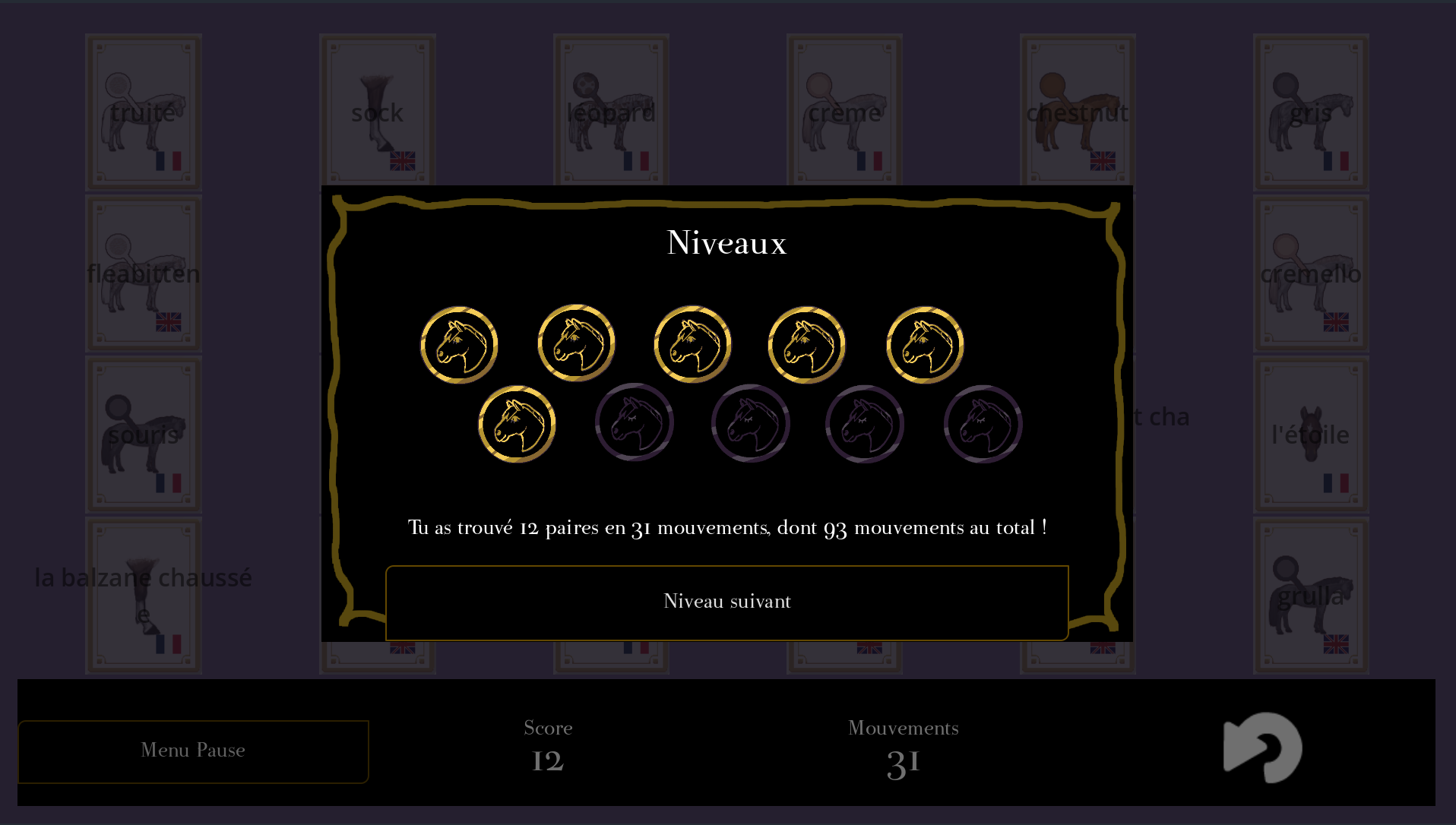 Horse vocabulary is very specialized knowledge you don't learn in language classes, but you want to talk to horse nerds internationally! We've got you covered with a gamification for vocabulary relating to horse care, anatomy, coat colors, riding, tack and other things you encounter at the barn!